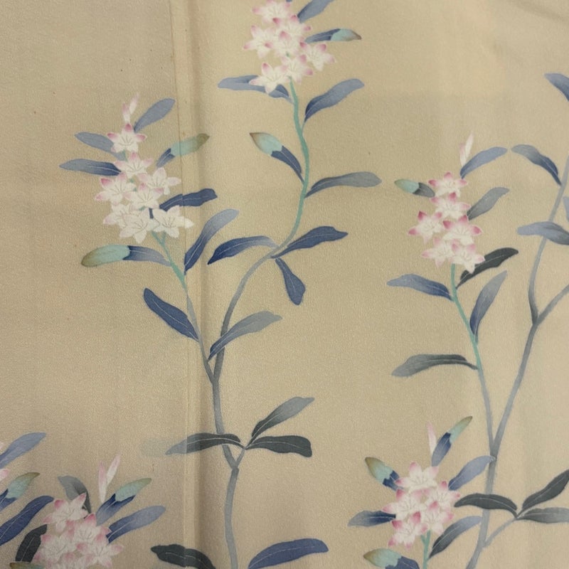 【着物ランク】秀品 【素材】正絹 【身丈】約158.5cm 【裄丈】約63cm 【袖丈】約49cm 【袖幅】約32.5cm 【前幅】約23.5cm 【後幅】約29.5cm 【サイズ】S 【着物仕立て】袷 【着用時期】10~5月 【状態ランク】ランクB 【着物着用シーン】披露宴、パーティー、お見合い、式典、茶会