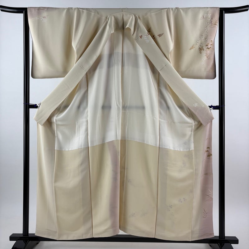 【訪問着】 白系 ベージュ 秀品 B 約150cm~約159cm 裄丈63cm-64cm (M)size 袖丈48cm 7990-9980 二万以下