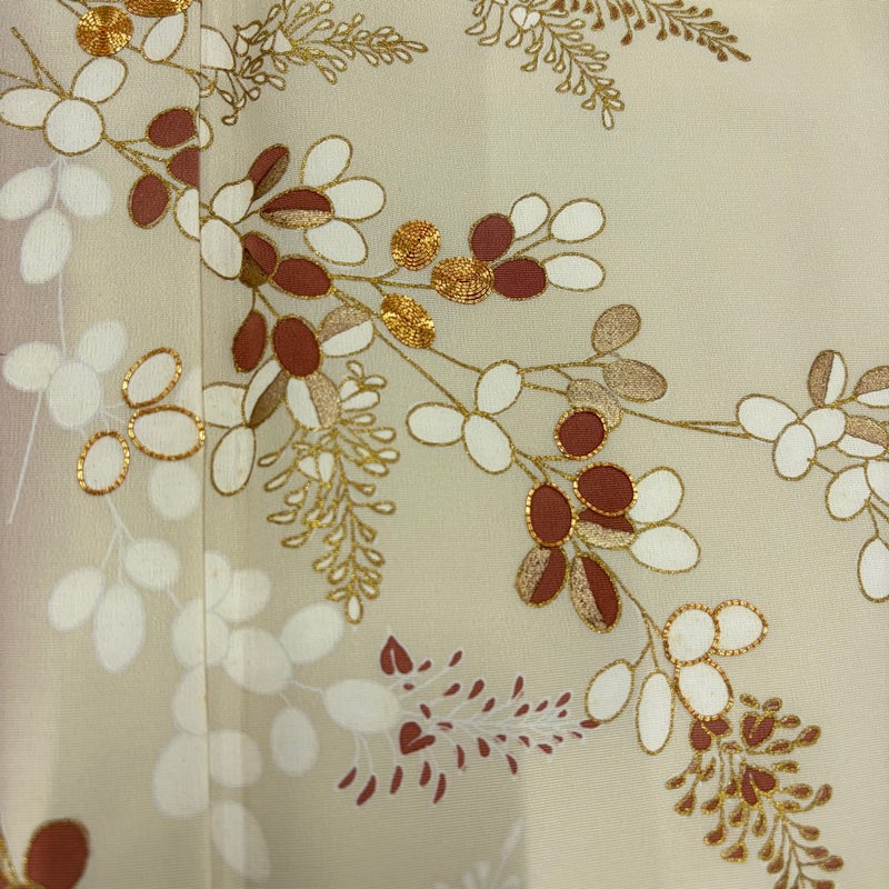 【着物ランク】秀品 【素材】正絹 【身丈】約158cm 【裄丈】約64cm 【袖丈】約48.5cm 【袖幅】約33cm 【前幅】約24cm 【後幅】約30cm 【サイズ】M 【着物仕立て】袷 【着用時期】10~5月 【状態ランク】ランクB 【着物着用シーン】披露宴、パーティー、お見合い、式典、茶会