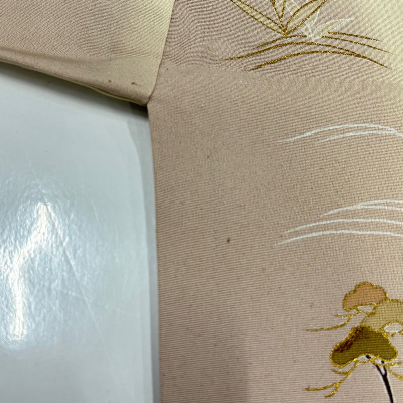 帯次第で幅広くお使いいただける素敵な訪問着です。 帯により格式を変える事の出来る印象のお着物は、様々に場面で活躍してくれることでしょう。 ※身丈・裄丈の縫込みの長さは測っておりません。 表地所々にシミ、衿周りや両袖口中に汚れ、表地所々に金彩の変色がございます。 八掛にシミがございます。 リユース品としては良い状態で、まだまだご活用頂けると思われます。 ※なお、厳しく商品の状態確認を行っておりますが、記載の汚れ以外にも見落とし箇所がある可能性がある旨ご了承いただけますと幸いです。 沢山の商品の中からご覧いただき誠にありがとうございます。