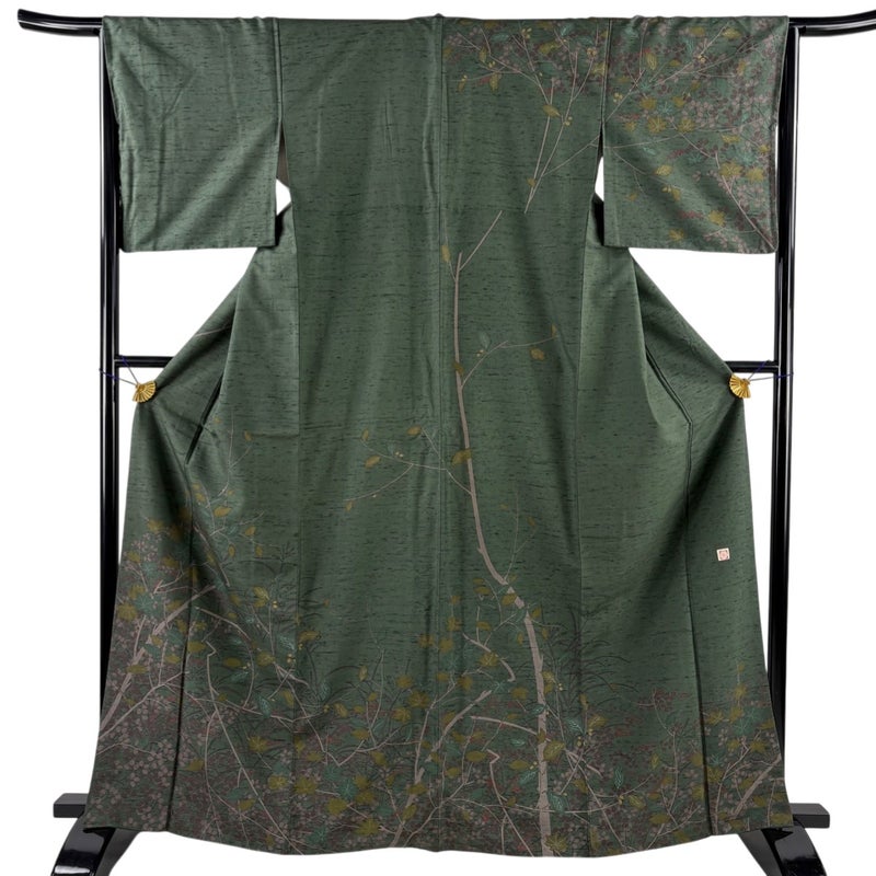 【訪問着】 緑系 深緑 逸品 A 約160cm~約169cm 裄丈66cm (M)size 袖丈47cm 30000- 美品 五万以下