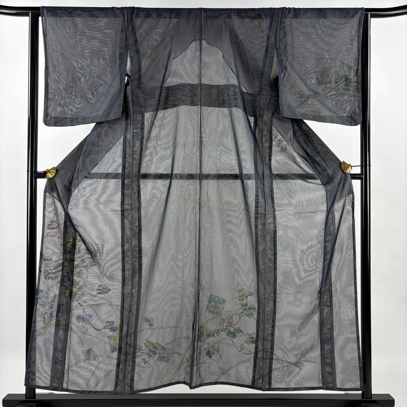 【着物ランク】名品 【素材】正絹 【身丈】約156cm 【裄丈】約64cm 【袖丈】約48cm 【袖幅】約34.5cm 【前幅】約24cm 【後幅】約30.5cm 【サイズ】M 【着物仕立て】紗袷 【着用時期】6/9月 【状態ランク】ランクB 【着物着用シーン】披露宴、パーティー、お見合い、式典、茶会