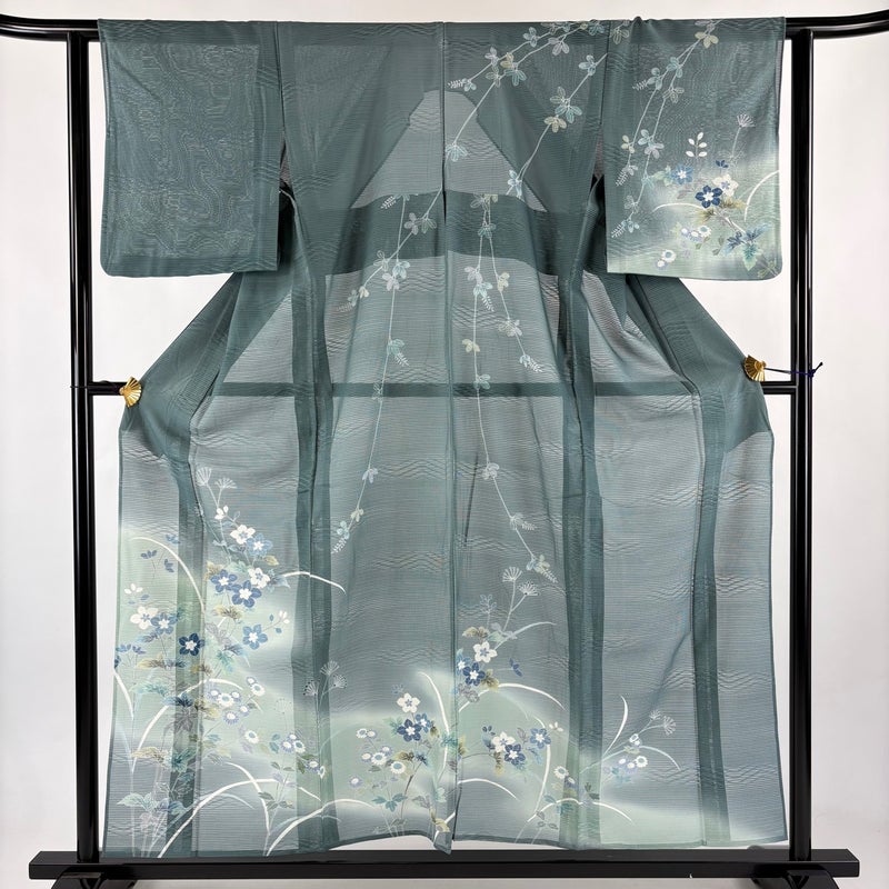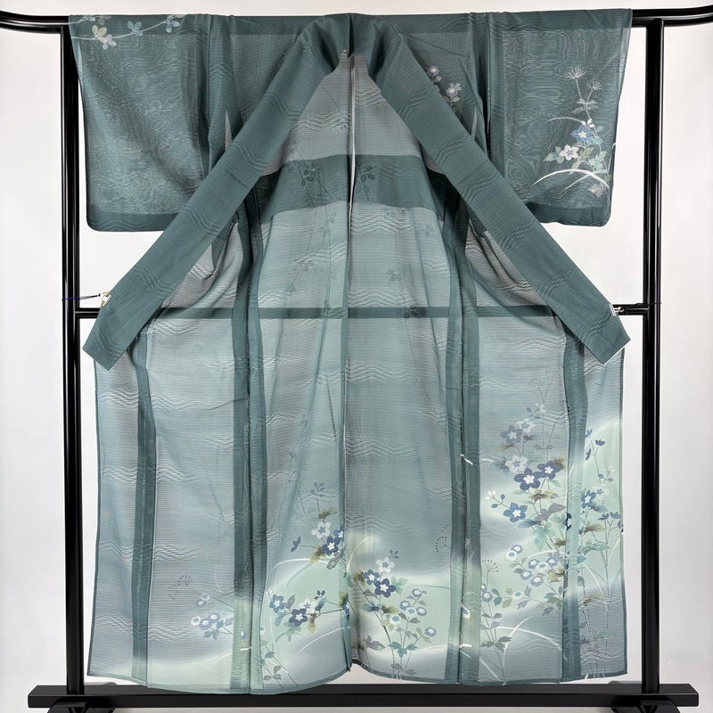【訪問着】 灰色系 灰緑 名品 B 約150cm~約159cm 裄丈62cm以下 (S)size 袖丈48cm 9990-29990 五万以下