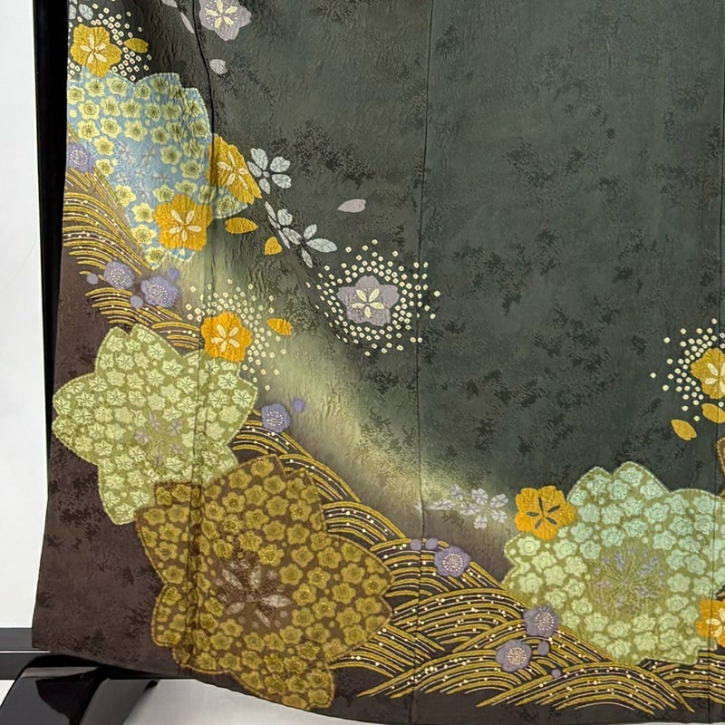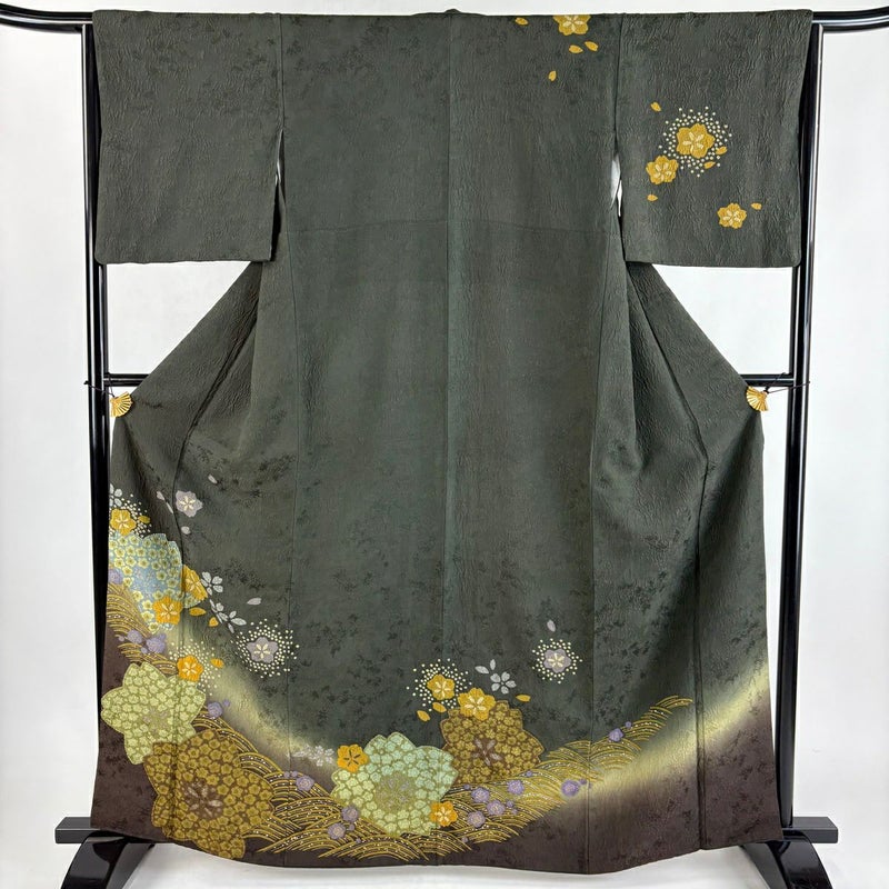 【訪問着】 茶系 茶緑色 秀品 B 約160cm~約169cm 裄丈65cm (M)size 袖丈46cm以下 7990-9980 二万以下