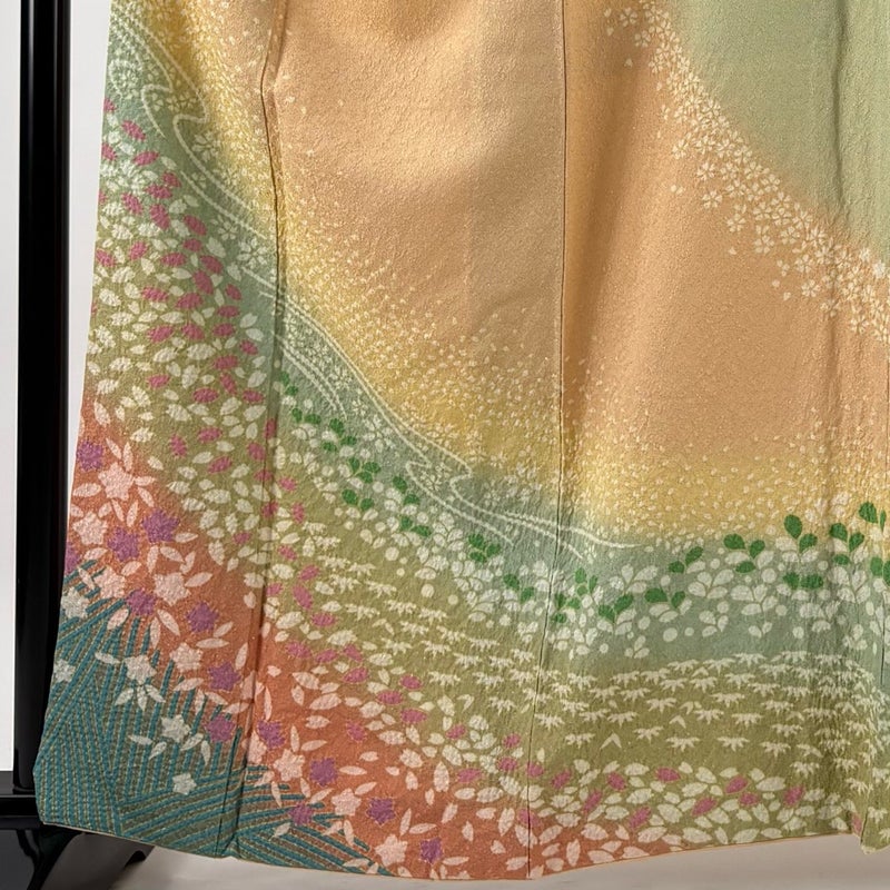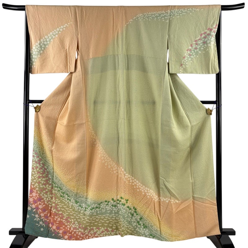 【着物ランク】名品 【素材】正絹 【身丈】約161cm 【裄丈】約65.5cm 【袖丈】約49.5cm 【袖幅】約34cm 【前幅】約24.5cm 【後幅】約30.5cm 【サイズ】M 【着物仕立て】袷 【着用時期】10~5月 【状態ランク】ランクB 【着物着用シーン】披露宴、パーティー、お見合い、式典、茶会