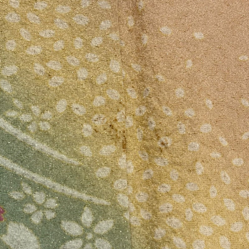 気品たっぷりにお召し頂ける素敵な訪問着です。 上品な華やぎを求められるパーティーや、品格が求められるお席などにお使い頂けます。 ※身丈・裄丈の縫込みの長さは測っておりません。 表地所々にヤケ、上前と右前袖と右袖中にシミ、右後袖に点シミ、衿周りに汚れ、両袖口中に薄汚れ、表地所々にシワがございます。 裏地所々にシワがございます。 リユース品としては良い状態で、まだまだご活用頂けると思われます。 ※なお、厳しく商品の状態確認を行っておりますが、記載の汚れ以外にも見落とし箇所がある可能性がある旨ご了承いただけますと幸いです。 沢山の商品の中からご覧いただき誠にありがとうございます。