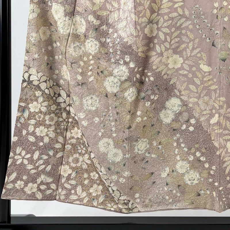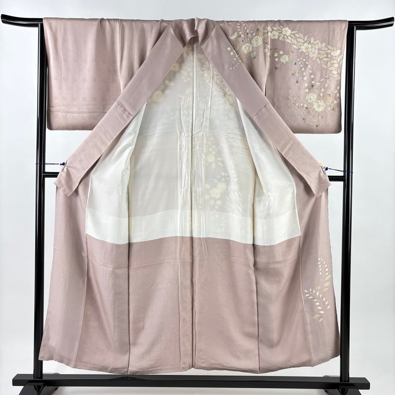 【着物ランク】名品 【素材】正絹 【身丈】約153cm 【裄丈】約64cm 【袖丈】約48.5cm 【袖幅】約33.5cm 【前幅】約23.5cm 【後幅】約29.5cm 【サイズ】M 【着物仕立て】袷 【着用時期】10~5月 【状態ランク】ランクB 【着物着用シーン】披露宴、パーティー、お見合い、式典、茶会