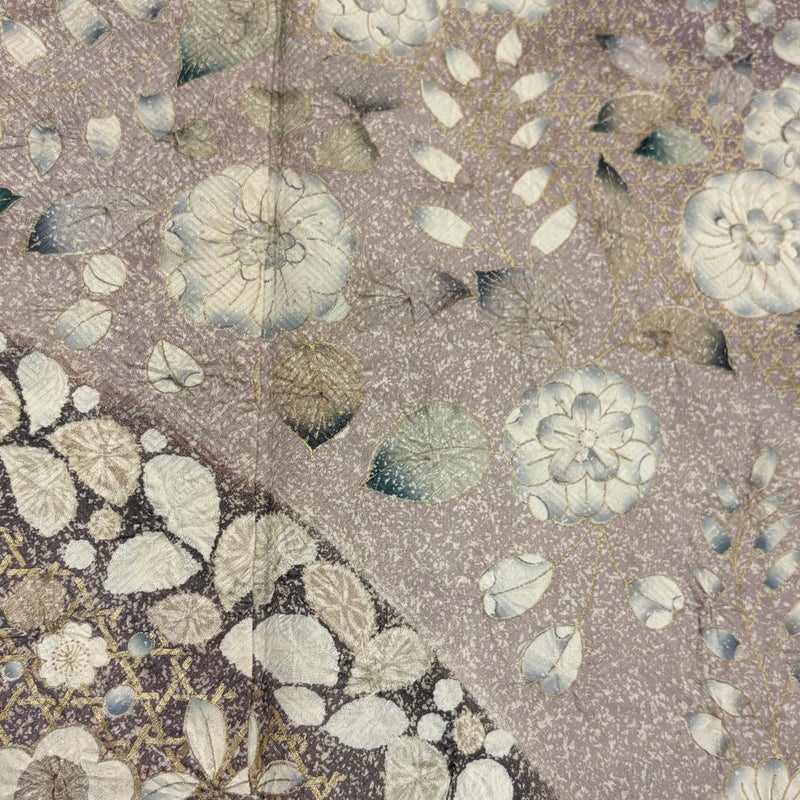 気品たっぷりにお召し頂ける素敵な訪問着です。 上品な華やぎを求められるパーティーや、品格が求められるお席などにお使い頂けます。 ※身丈・裄丈の縫込みの長さは測っておりません。 表地所々にヤケ、衿周りや両袖口中に汚れ、右後袖付けにほつれ、表地所々に糸つれ、表地所々に金彩の変色がございます。 裏地両脇に汗シミがございます。また、上前から後身頃にかけて柄のズレがございます。 リユース品としては良い状態で、まだまだご活用頂けると思われます。 ※なお、厳しく商品の状態確認を行っておりますが、記載の汚れ以外にも見落とし箇所がある可能性がある旨ご了承いただけますと幸いです。 沢山の商品の中からご覧いただき誠にありがとうございます。