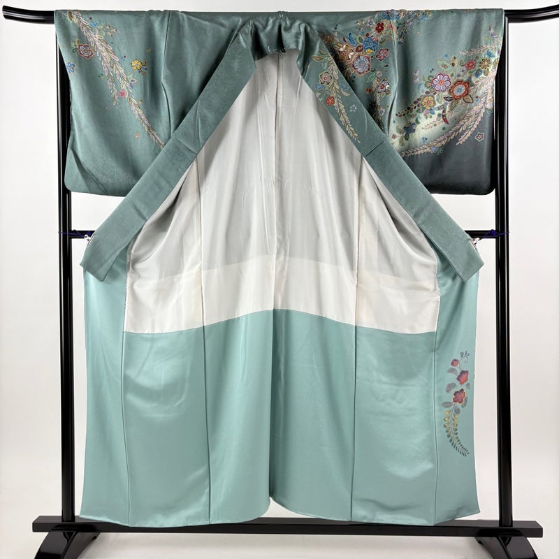 【訪問着】 灰色系 灰緑 名品 B 約150cm~約159cm 裄丈66cm (M)size 袖丈50cm-60cm 9990-29990 二万以下