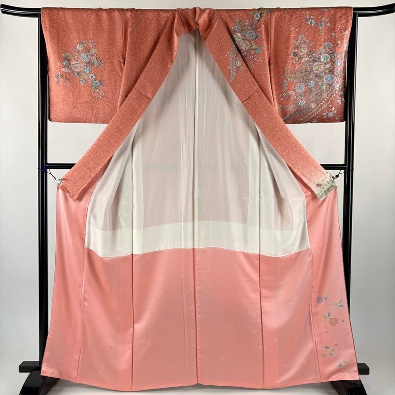 【訪問着】 赤系 ピンクベージュ 名品 C 約160cm~約169cm 裄丈66cm (M)size 袖丈48cm 9990-29990 二万以下