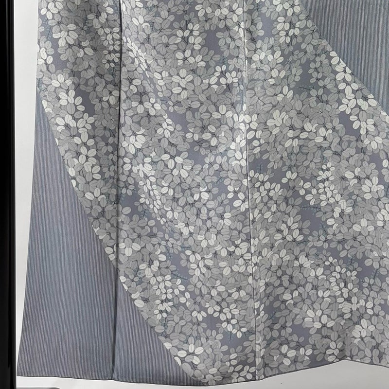 【訪問着】 灰色系 青灰色 名品 A 約150cm~約159cm 裄丈63cm-64cm (M)size 袖丈46cm以下 9990-29990 美品 二万以下