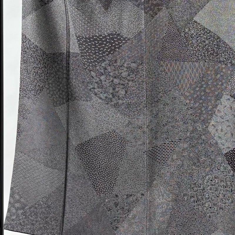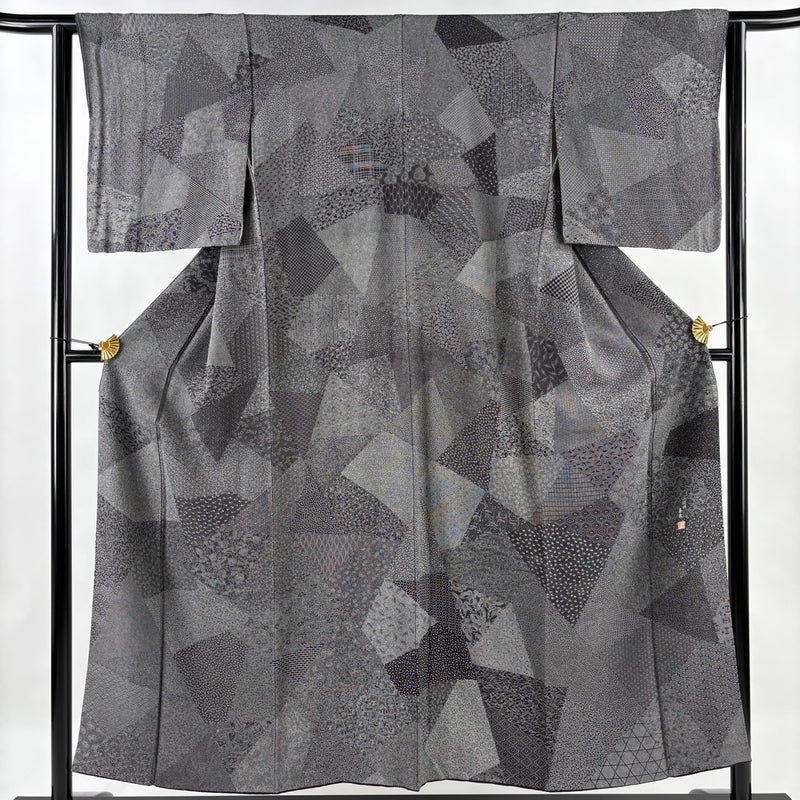 【訪問着】 灰色系 黒灰 名品 A 約150cm~約159cm 裄丈62cm以下 (S)size 袖丈47cm 9990-29990 美品 二万以下