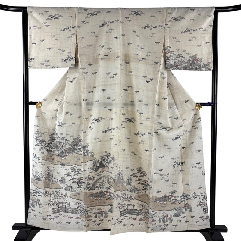 【訪問着】 白系 クリーム 名品 B 約150cm~約159cm 裄丈63cm-64cm (M)size 袖丈46cm以下 9990-29990 五万以下