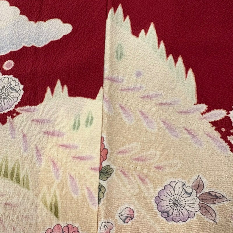 【訪問着】 赤系 茜色 秀品 B 約160cm~約169cm 裄丈69cm以上 (L)size 袖丈50cm-60cm 7990-9980 二万以下