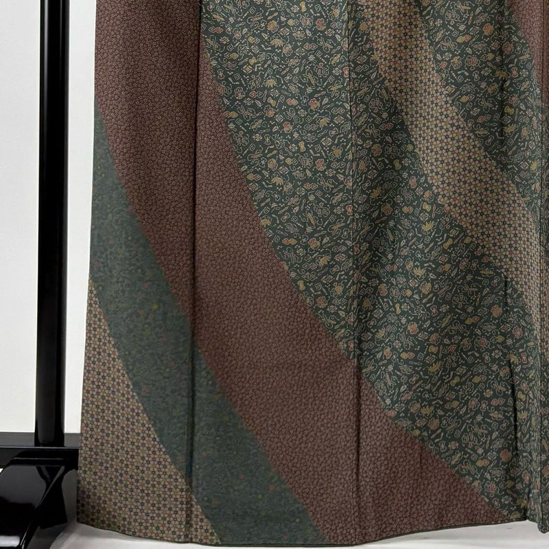 【着物ランク】秀品 【素材】正絹 【身丈】約167.5cm 【裄丈】約66cm 【袖丈】約48.5cm 【袖幅】約33.5cm 【前幅】約22.5cm 【後幅】約30.5cm 【サイズ】M 【着物仕立て】袷 【着用時期】10~5月 【状態ランク】ランクA 【着物着用シーン】披露宴、パーティー、お見合い、式典、茶会