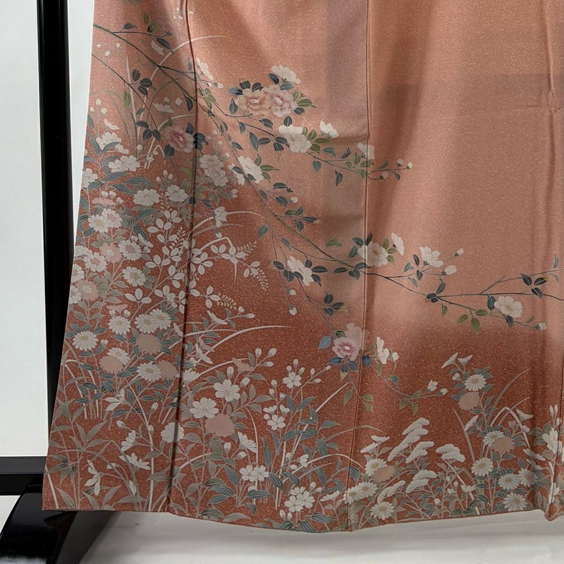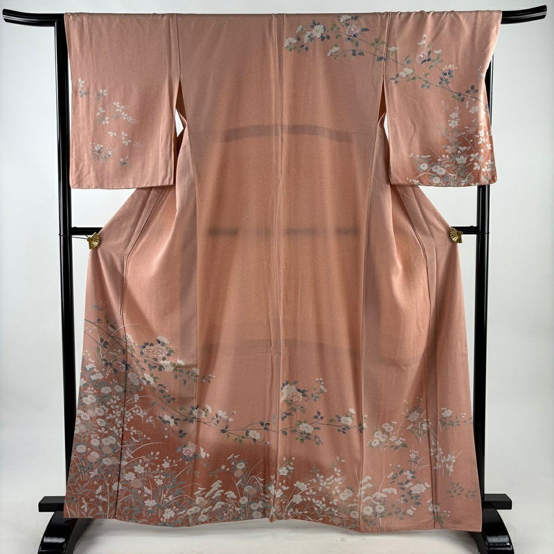 【訪問着】 赤系 薄ピンク 秀品 B 約160cm~約169cm 裄丈67cm-68cm (M)size 袖丈50cm-60cm 7990-9980 二万以下