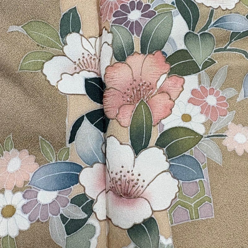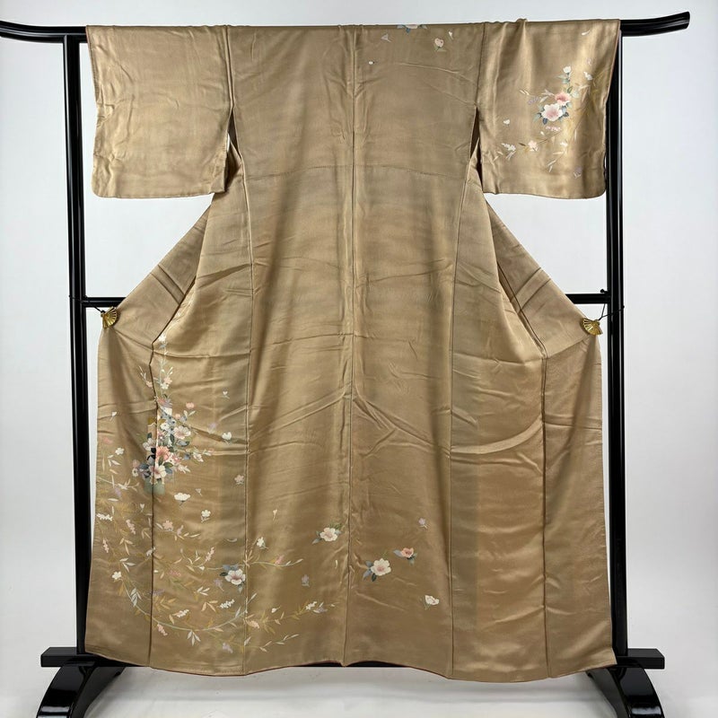 【訪問着】 茶系 薄茶色 秀品 B 約160cm~約169cm 裄丈66cm (M)size 袖丈46cm以下 7990-9980 二万以下