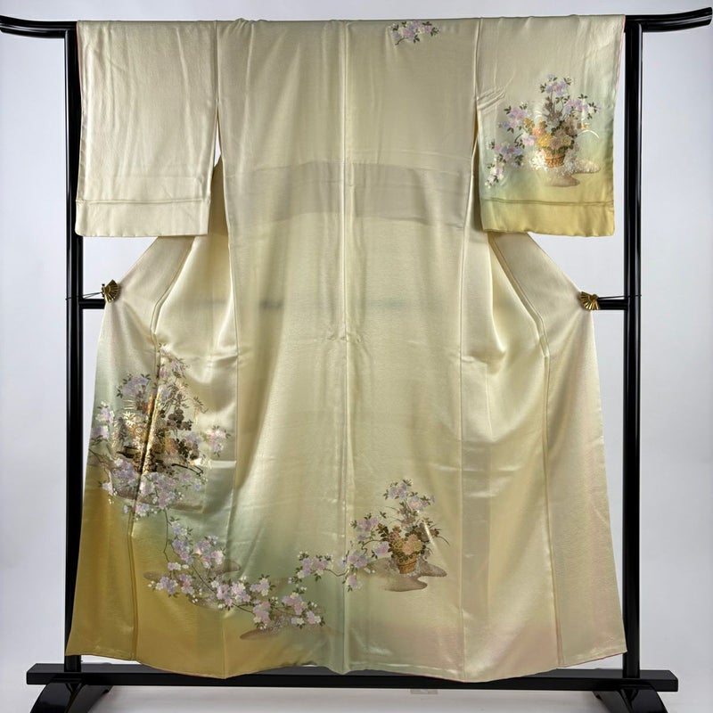 【着物ランク】秀品 【素材】正絹 【身丈】約157cm 【裄丈】約63.5cm 【袖丈】約52cm 【袖幅】約33.5cm 【前幅】約24cm 【後幅】約30cm 【サイズ】S 【着物仕立て】袷 【着用時期】10~5月 【状態ランク】ランクB 【着物着用シーン】披露宴、パーティー、お見合い、式典、茶会