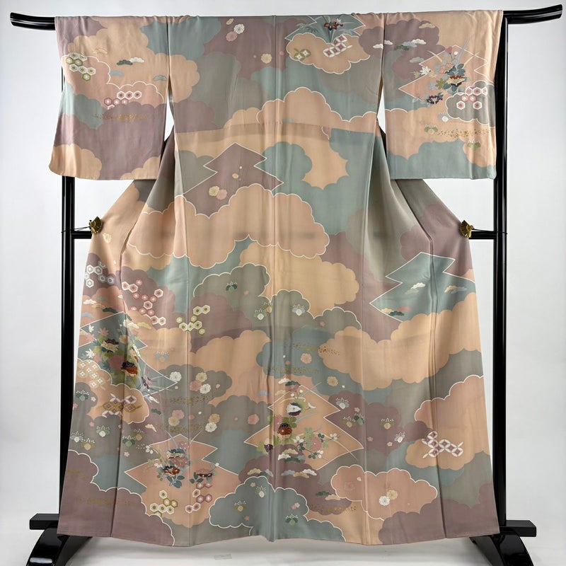 【訪問着】 赤系 ピンクベージュ 秀品 B 約160cm~約169cm 裄丈67cm-68cm (L)size 袖丈50cm-60cm 7990-9980 二万以下
