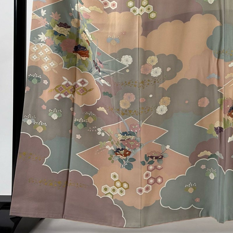 【着物ランク】秀品 【素材】正絹 【身丈】約160cm 【裄丈】約68cm 【袖丈】約51.5cm 【袖幅】約34.5cm 【前幅】約25cm 【後幅】約29cm 【サイズ】L 【着物仕立て】袷 【着用時期】10~5月 【状態ランク】ランクB 【着物着用シーン】披露宴、パーティー、お見合い、式典、茶会