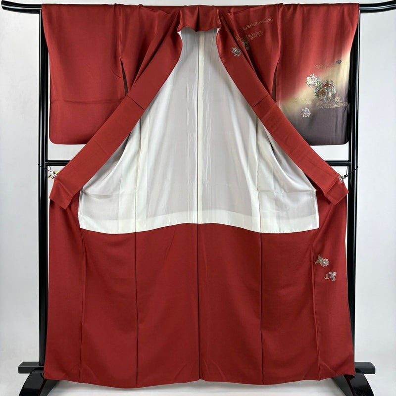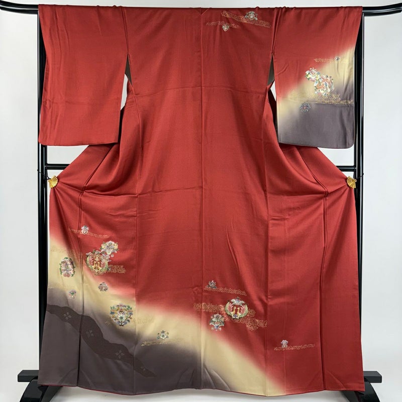 【訪問着】 赤系 えんじ色 秀品 B 約160cm~約169cm 裄丈67cm-68cm (M)size 袖丈50cm-60cm 7990-9980 二万以下