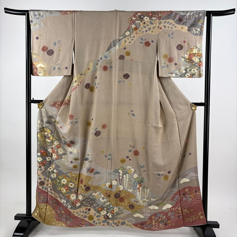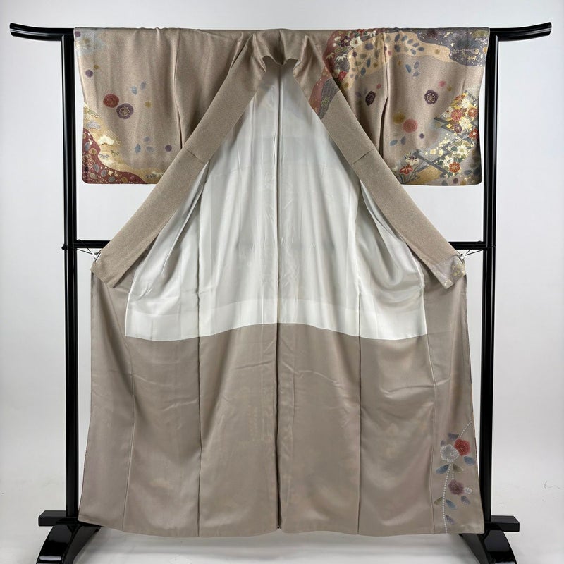 【訪問着】 茶系 薄茶色 名品 C 約160cm~約169cm 裄丈63cm-64cm (S)size 袖丈49cm 9990-29990 二万以下