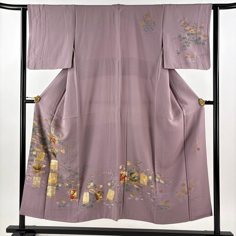 【訪問着】 灰色系 灰紫 秀品 B 約150cm~約159cm 裄丈62cm以下 (S)size 袖丈46cm以下 7990-9980 二万以下