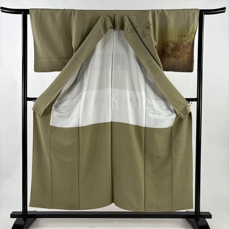 【訪問着】 灰色系 灰緑 秀品 A 約150cm~約159cm 裄丈62cm以下 (S)size 袖丈47cm 9990-29990 美品 二万以下