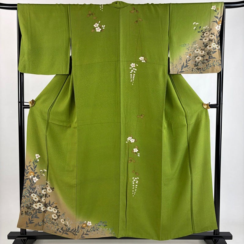 【訪問着】 緑系 よもぎ色 秀品 B 約150cm~約159cm 裄丈66cm (M)size 袖丈46cm以下 7990-9980 二万以下