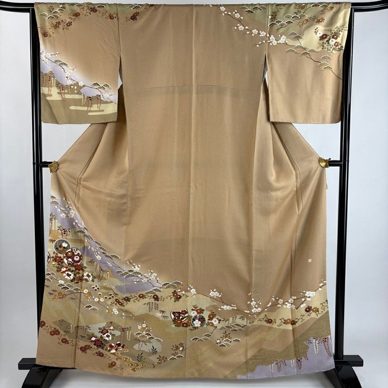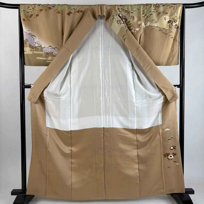 【訪問着】 茶系 薄茶色 秀品 A 約160cm~約169cm 裄丈63cm-64cm (M)size 袖丈50cm-60cm 9990-29990 美品 二万以下