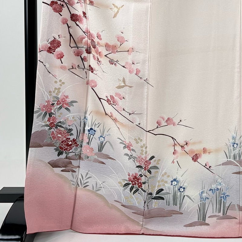 【訪問着】 赤系 薄ピンク 名品 B 約170cm~約179cm 裄丈66cm (M)size 袖丈50cm-60cm 9990-29990 二万以下
