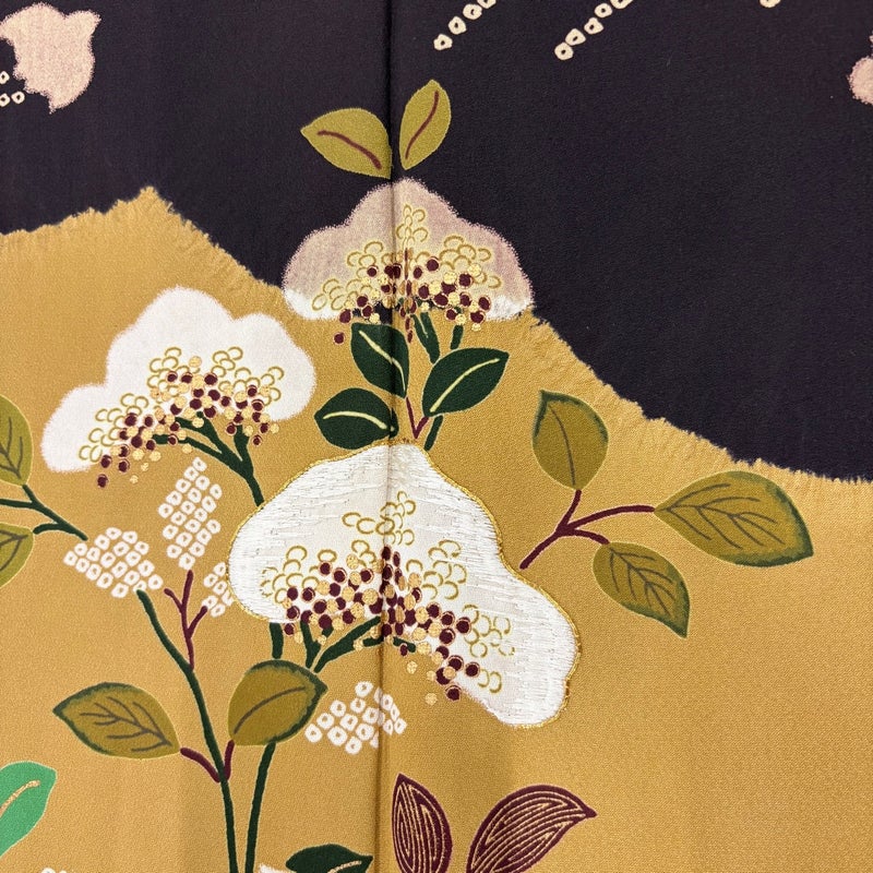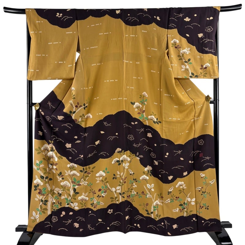 【着物ランク】名品 【素材】正絹 【身丈】約163cm 【裄丈】約68cm 【袖丈】約53cm 【袖幅】約34.5cm 【前幅】約24.5cm 【後幅】約30.5cm 【サイズ】L 【着物仕立て】袷 【着用時期】10~5月 【状態ランク】ランクB 【作家名】花井幸子 【着物着用シーン】披露宴、パーティー、お見合い、式典、茶会