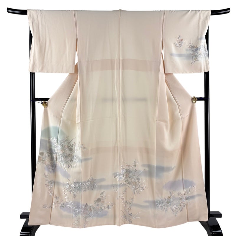 【着物ランク】名品 【素材】正絹 【身丈】約164cm 【裄丈】約66.5cm 【袖丈】約48.5cm 【袖幅】約34cm 【前幅】約24.5cm 【後幅】約30cm 【サイズ】M 【着物仕立て】袷 【着用時期】10~5月 【状態ランク】ランクB 【着物着用シーン】披露宴、パーティー、お見合い、式典、茶会