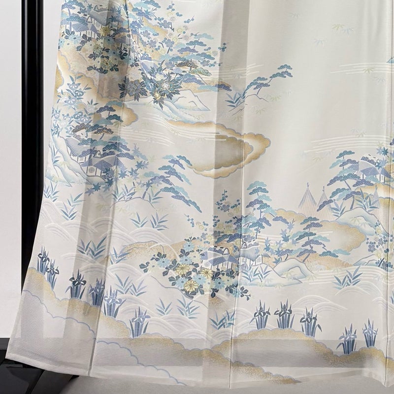 【着物ランク】名品 【素材】正絹 【身丈】約162cm 【裄丈】約64cm 【袖丈】約48.5cm 【袖幅】約32.5cm 【前幅】約25cm 【後幅】約30.5cm 【サイズ】M 【着物仕立て】薄物 【着用時期】7~8月 【状態ランク】ランクA 【着物着用シーン】披露宴、パーティー、お見合い、式典、茶会