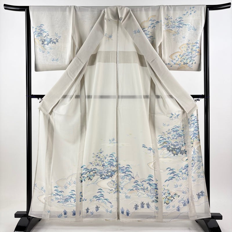 【訪問着】 灰色系 灰色 名品 A 約160cm~約169cm 裄丈63cm-64cm (M)size 袖丈48cm 9990-29990 美品 五万以下