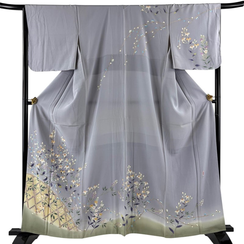 【着物ランク】名品 【素材】正絹 【身丈】約160cm 【裄丈】約66cm 【袖丈】約47cm 【袖幅】約34cm 【前幅】約26cm 【後幅】約31cm 【サイズ】M 【着物仕立て】袷 【着用時期】10~5月 【状態ランク】ランクB 【着物着用シーン】披露宴、パーティー、お見合い、式典、茶会