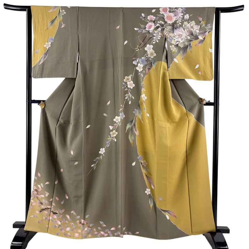 【着物ランク】名品 【素材】正絹 【身丈】約162cm 【裄丈】約63.5cm 【袖丈】約52cm 【袖幅】約32.5cm 【前幅】約24.5cm 【後幅】約29cm 【サイズ】S 【着物仕立て】袷 【着用時期】10~5月 【状態ランク】ランクB 【着物着用シーン】披露宴、パーティー、お見合い、式典、茶会