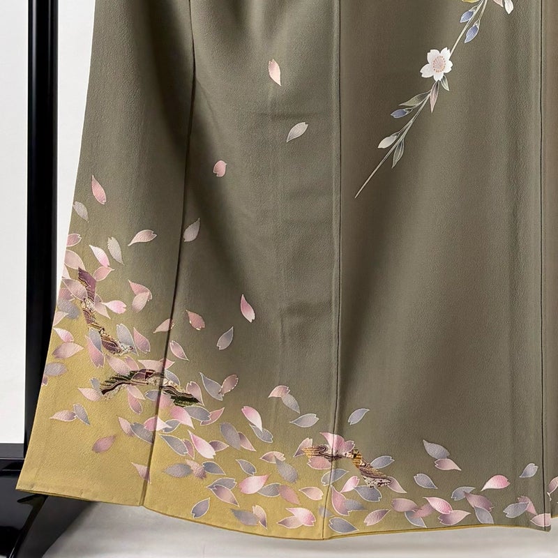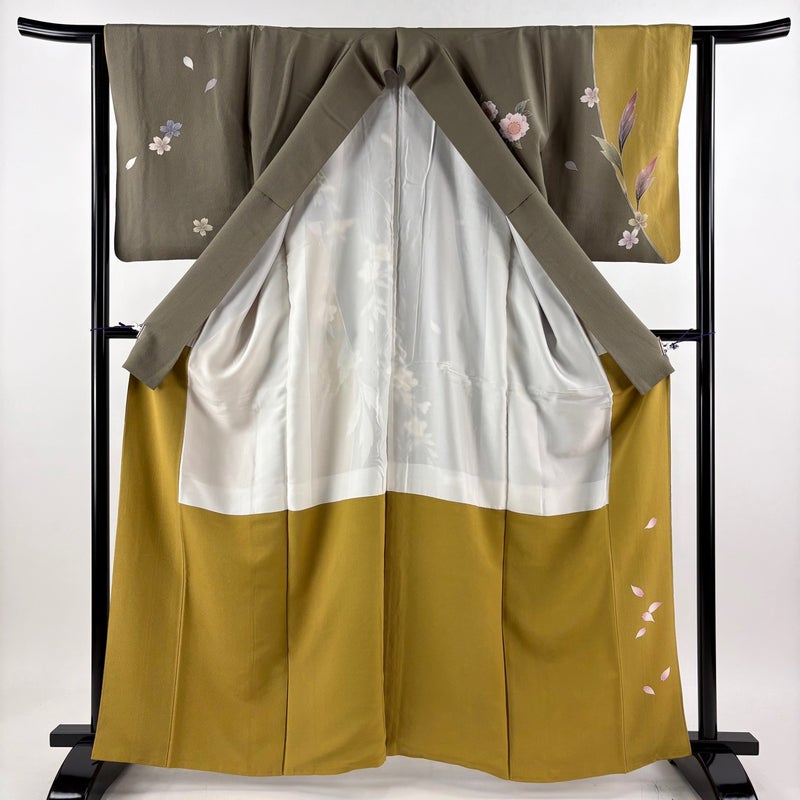 【訪問着】 茶系 茶緑色 名品 B 約160cm~約169cm 裄丈63cm-64cm (S)size 袖丈50cm-60cm 9990-29990 二万以下