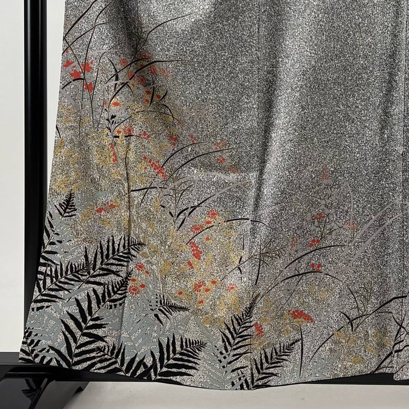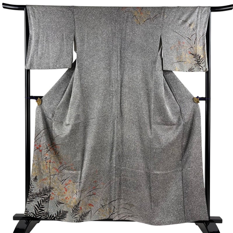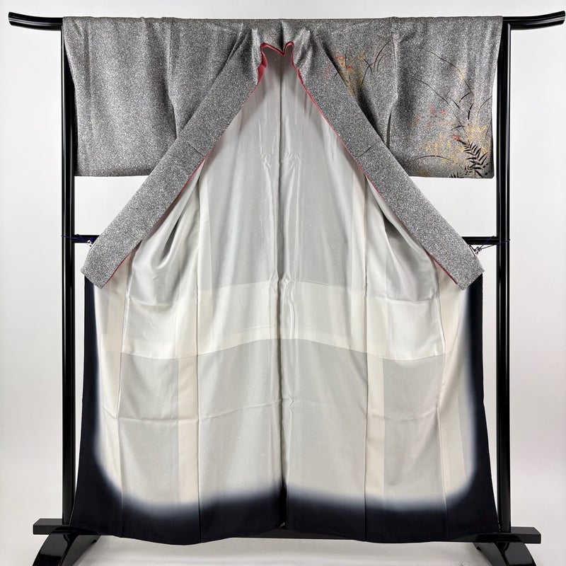 【訪問着】 灰色系 黒灰 秀品 A 約150cm~約159cm 裄丈65cm (M)size 袖丈48cm 9990-29990 美品 二万以下
