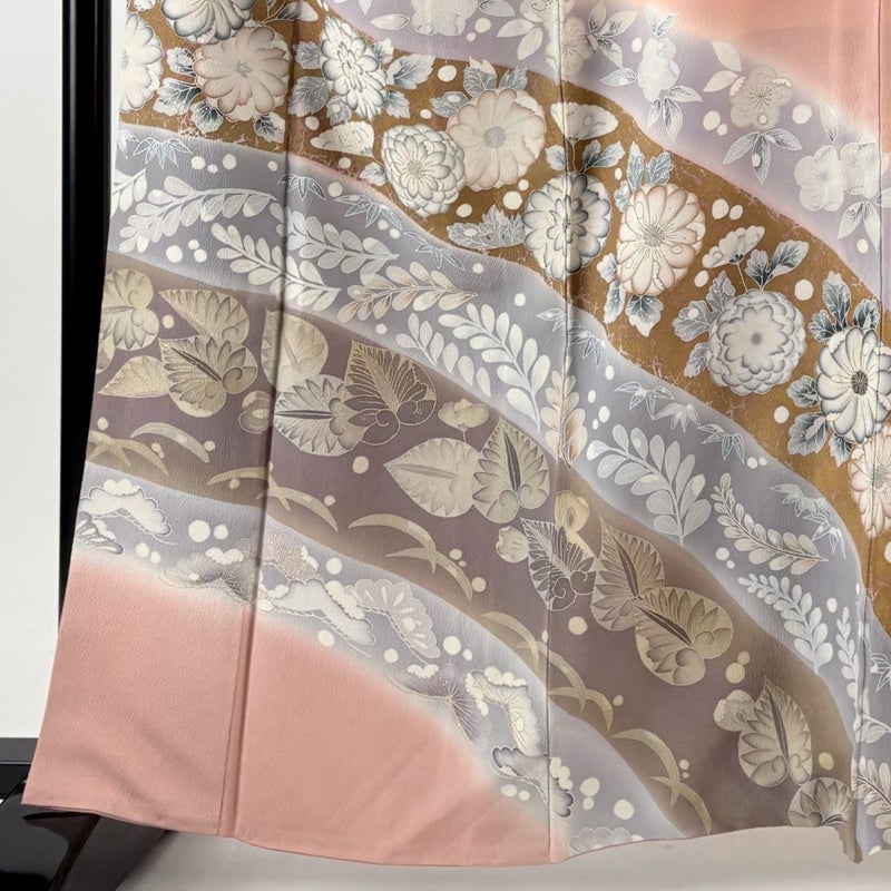 【着物ランク】秀品 【素材】正絹 【身丈】約161.5cm 【裄丈】約65cm 【袖丈】約48cm 【袖幅】約33.5cm 【前幅】約26cm 【後幅】約29.5cm 【サイズ】M 【着物仕立て】袷 【着用時期】10~5月 【状態ランク】ランクB 【着物着用シーン】披露宴、パーティー、お見合い、式典、茶会