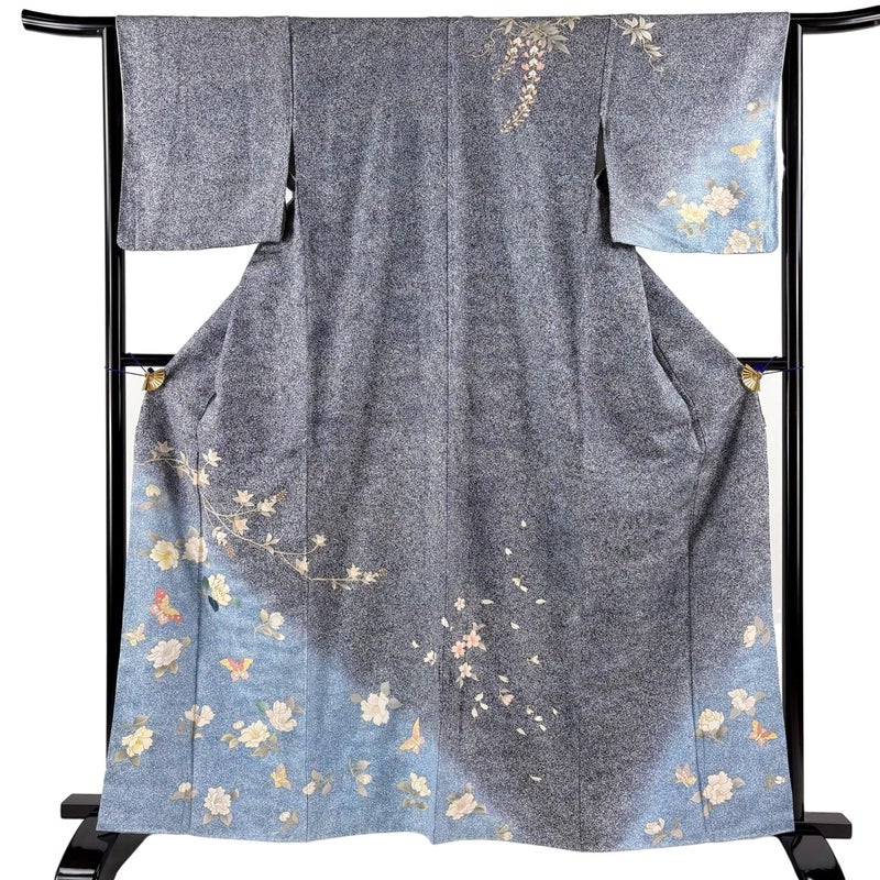 【訪問着】 青系 紺色 秀品 B 約160cm~約169cm 裄丈63cm-64cm (S)size 袖丈47cm 7990-9980 二万以下