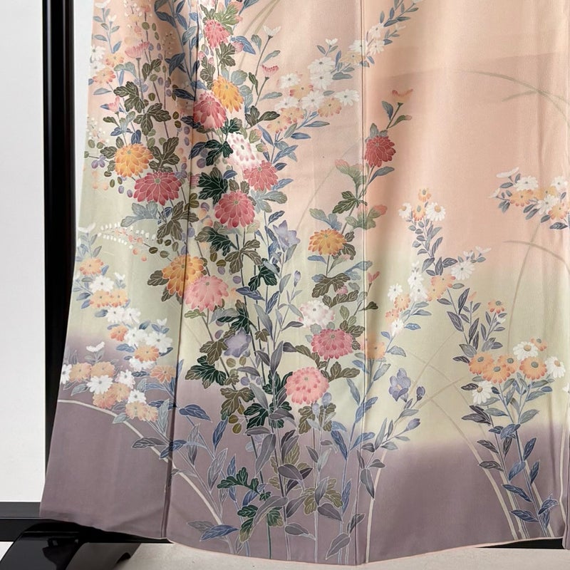 【着物ランク】秀品 【素材】正絹 【身丈】約159.5cm 【裄丈】約66.5cm 【袖丈】約47.5cm 【袖幅】約34cm 【前幅】約24.5cm 【後幅】約30.5cm 【サイズ】M 【着物仕立て】袷 【着用時期】10~5月 【状態ランク】ランクA 【着物着用シーン】披露宴、パーティー、お見合い、式典、茶会