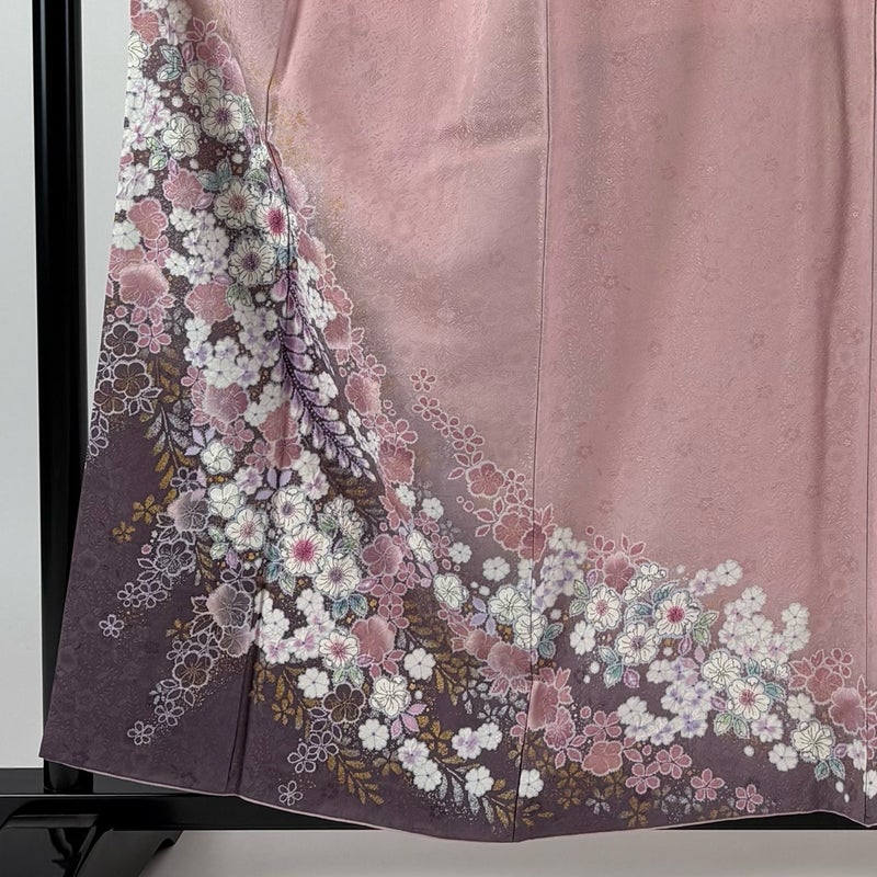 【着物ランク】名品 【素材】正絹 【身丈】約158.5cm 【裄丈】約64cm 【袖丈】約52cm 【袖幅】約33.5cm 【前幅】約24cm 【後幅】約30cm 【サイズ】M 【着物仕立て】袷 【着用時期】10~5月 【状態ランク】ランクB 【着物着用シーン】披露宴、パーティー、お見合い、式典、茶会
