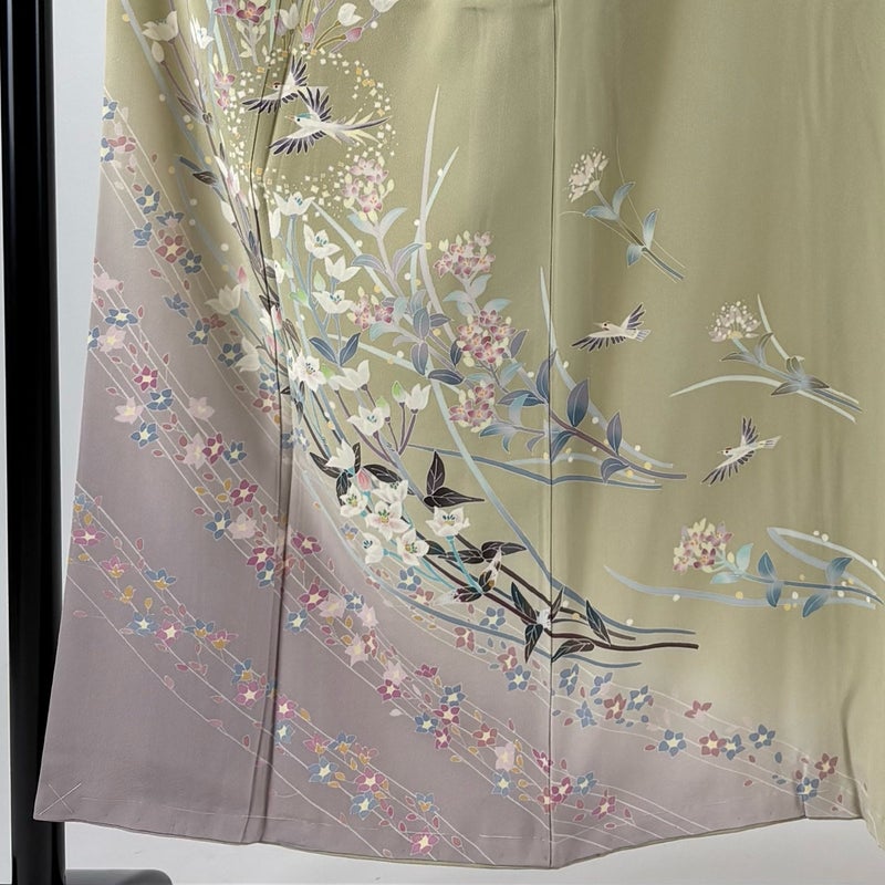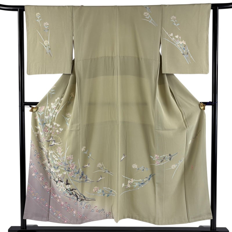 【訪問着】 緑系 抹茶色 名品 B 約150cm~約159cm 裄丈62cm以下 (S)size 袖丈47cm 9990-29990 二万以下