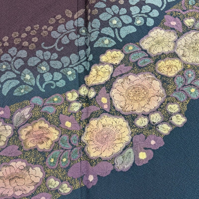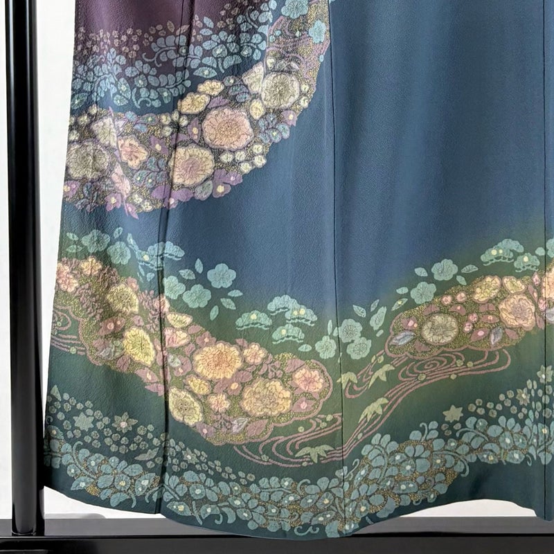 【着物ランク】名品 【素材】正絹 【身丈】約154cm 【裄丈】約68cm 【袖丈】約49cm 【袖幅】約34.5cm 【前幅】約25cm 【後幅】約30.5cm 【サイズ】L 【着物仕立て】袷 【着用時期】10~5月 【状態ランク】ランクB 【着物着用シーン】披露宴、パーティー、お見合い、式典、茶会