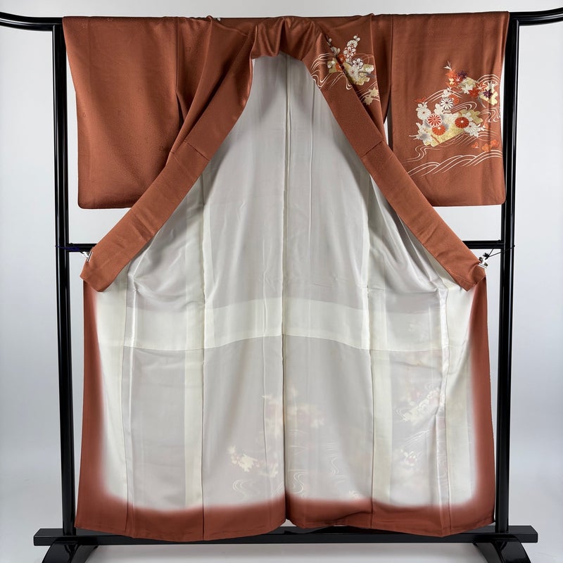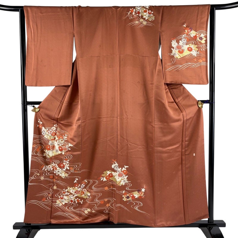 【訪問着】 赤系 赤茶 名品 B 約150cm~約159cm 裄丈63cm-64cm (M)size 袖丈50cm-60cm 9990-29990 二万以下