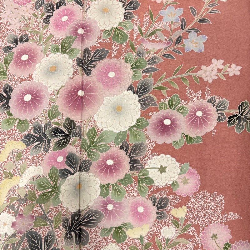 【着物ランク】名品 【素材】正絹 【身丈】約164.5cm 【裄丈】約65.5cm 【袖丈】約48.5cm 【袖幅】約33.5cm 【前幅】約23cm 【後幅】約31cm 【サイズ】M 【着物仕立て】袷 【着用時期】10~5月 【状態ランク】ランクA 【着物着用シーン】披露宴、パーティー、お見合い、式典、茶会