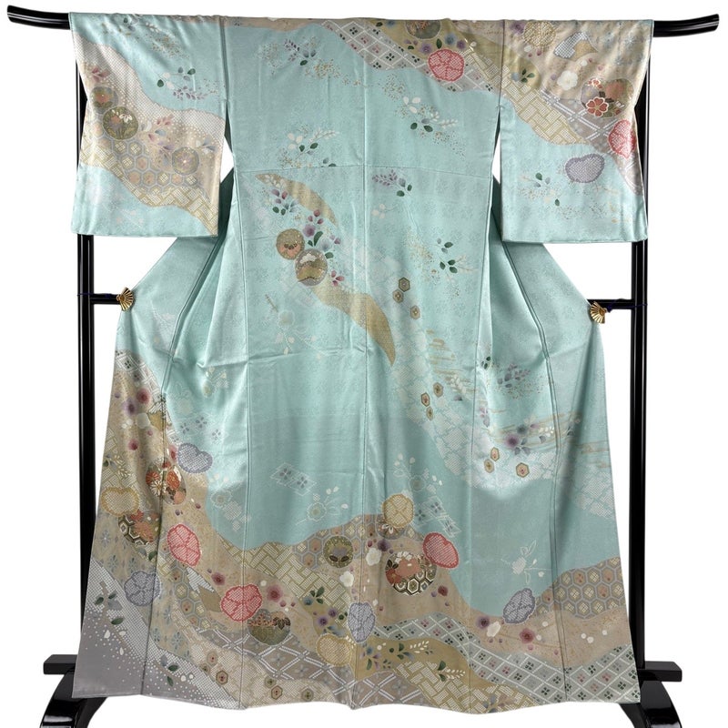 【訪問着】 青系 水色 名品 B 約160cm~約169cm 裄丈69cm以上 (L)size 袖丈50cm-60cm 9990-29990 二万以下