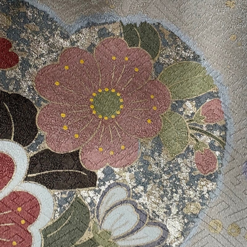 【着物ランク】名品 【素材】正絹 【身丈】約165.5cm 【裄丈】約69cm 【袖丈】約53.5cm 【袖幅】約35.5cm 【前幅】約24.5cm 【後幅】約31cm 【サイズ】L 【着物仕立て】袷 【着用時期】10~5月 【状態ランク】ランクB 【着物着用シーン】披露宴、パーティー、お見合い、式典、茶会
