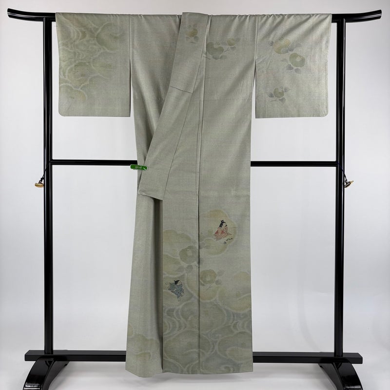 【訪問着】 灰色系 灰緑 逸品 B 約150cm~約159cm 裄丈63cm-64cm (M)size 袖丈46cm以下 30000- 五万以下